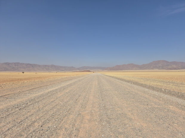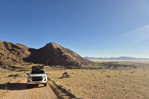 ‘Waarom ga je niet met een groep?’ opperde één van mijn vriendinnen. ‘Jullie hebben nul verstand van auto’s. En weten jullie wel hoe groot Namibië is?’